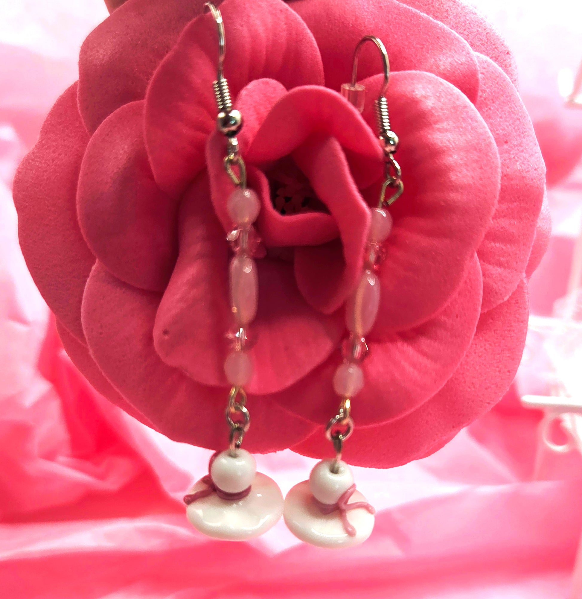 Pink & White Diva Hat Earrings - One-of-a-Kind